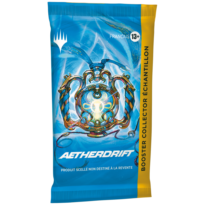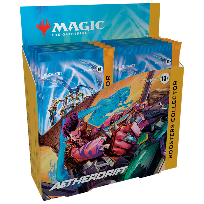 Le meilleur moyen de récupérer les plus belles cartes, les boosters collector sont remplis de cartes rares, de cartes Premium et de traitements spéciaux que vous ne trouverez nulle part ailleurs. Vous aurez notamment la possibilité de trouver une carte sérialisée spéciale, le grand prix de cette course à la mort multiverselle. Dans cette boîte, vous trouverez 2 cartes de présentation avec un traitement Premium spécial et 12 boosters collector Aetherdrift, contenant chacun 15 cartes Magic: The Gathering et 1 jeton recto-verso Premium traditionnel. Chaque booster contient 5 cartes de rareté rare ou supérieure, 3 à 5 cartes inhabituelles, 4 à 6 cartes courantes et 1 carte de terrain pleine illustration, avec un total de 10 à 12 cartes Premium traditionnelles. Une carte sérialisée est disponible dans <1 % des boosters collector.