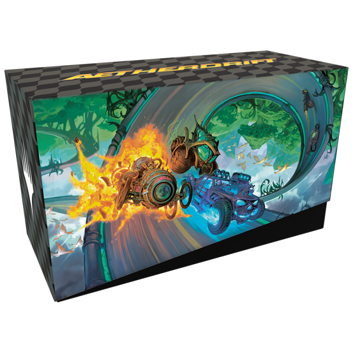Le Bundle est un cadeau idéal pour les super fans de Magic ou pour les débutants qui viennent dans votre magasin. Collez la pédale au plancher et accélérez dans le monde d’Aetherdrift avec une boîte remplie de 9 boosters de jeu, 30 cartes de terrain (y compris 10 terrains pleine illustration), plus des accessoires exclusifs.