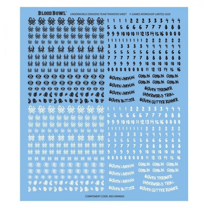 Ce kit plastique permet d'assembler une équipe de 12 joueurs des Bas-fonds pour vos parties de Blood Bowl. À l'aide de composants des équipes existantes de Skavens et de Gobelins, vous pourrez assembler 6 Linemen Gobelins, 3 Clanrats Skavens, 1 Blitzer Skaven, 1 Thrower Skaven et 1 Gutter Runner Skaven. Certains joueurs sont fournis avec des options cosmétiques telles que des têtes interchangeables pour personnaliser votre équipe. La boîte comprend aussi six ballons, deux pièces Blood Bowl, et deux pions de tour – de types répartis équitablement entre Skavens et Gobelins – ainsi qu'une planche de décalcomanie des Bas-fonds avec logos, numéros et postes.