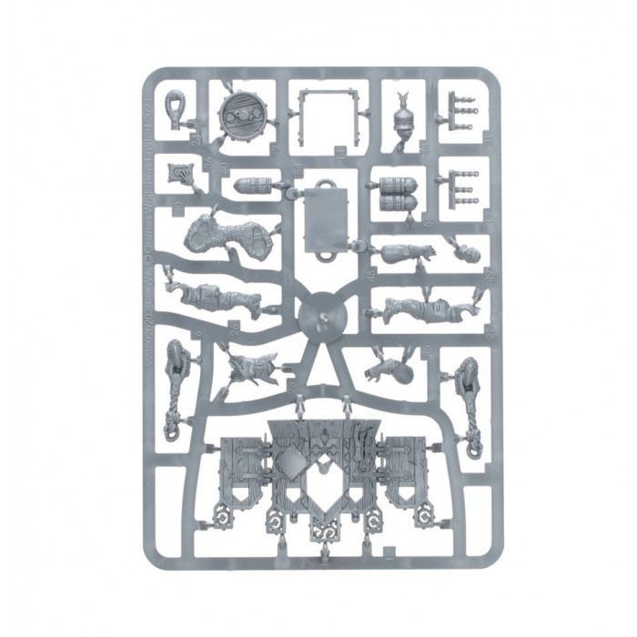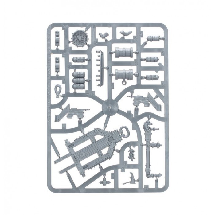 Les énormes pièces d’artillerie que sont les Grands Canons Soudefer agissent tels les bastions des formations de Castelains. Protégés par d’épais mantelets fixés à l’avant de chaque pièce, les servants chargent et rechargent sans relâche leur arme, afin que le barrage qui s’abat sur l’ennemi soit implacable. Ce kit plastique permet d'assembler un Grand Canon Soudefer, une puissante machine de guerre en service chez les Cités de Sigmar. Cette pièce lourde est montée sur un solide châssis à roues avec treuil, arrimé par des chaînes et des cordes à des piquets. Le Grand Canon est servi par deux artilleurs de l'Arsenal Soudefer, avec chacun des options de pose, de têtes et de bras pour varier votre batterie de Grands Canons. Un éventail d'éléments décoratifs pour agrémenter votre Grand Canon comprend un boutefeu et un marteau, plus des munitions empilées ou séparées pour figurer les trois types disponibles: boulet, mitraille et obus perforant. Ce kit comprend 61 composants plastique et un socle rond Citadel de 90mm. Également incluse, une planche de décalcomanies des Cités de Sigmar, avec 410 icônes de Cité Franche, des symboles du culte de Sigmar et autres formes d'héraldique. Cette figurine est fournie non assemblée et non peinte – nous recommandons la Colle Plastique Citadel et la peinture Citadel Colour.