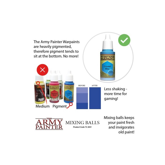 Les billes de mélange de haute qualité en acier inoxydable de 5,5 mm mélangeront parfaitement le médium et le pigment, en quelques secousses de votre bouteille de peinture.