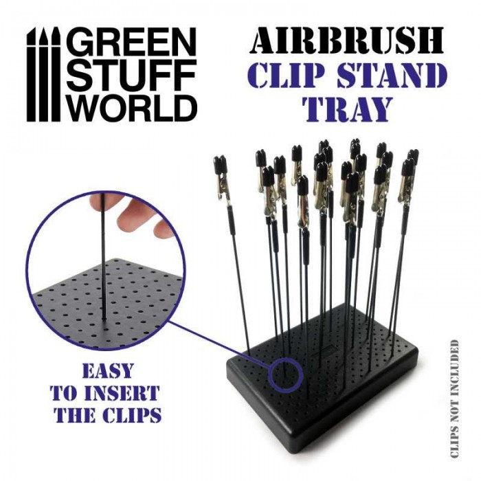 Planche en plastique GSW avec des trous pour tenir confortablement les figurines et les pièces tout en les aérographe. Contient deux types de trous pour différentes tailles de clip, 1,5 mm et 2 mm.