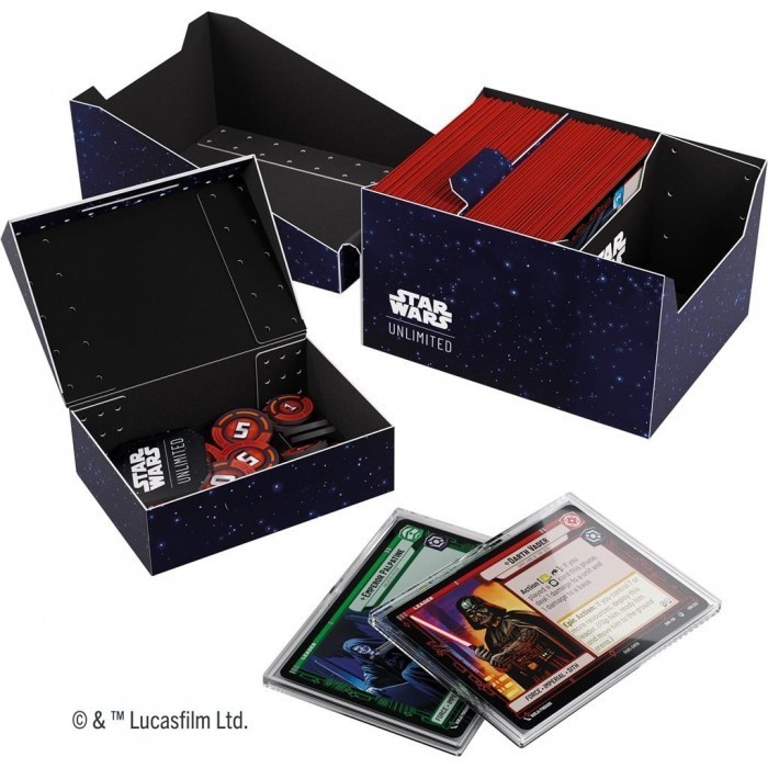 Avec notre Star Wars ™ : Unlimited TWIN SUNS Soft Crate, nous vous présentons la première solution tout-en-un économique pour le format populaire TWIN SUNS pour Star Wars ™ : Unlimited ! Cette boîte de deck au design révolutionnaire et sous licence officielle regorge de fonctionnalités incroyables. Elle stocke jusqu'à 100 cartes à double pochette horizontalement et comprend une boîte innovante pour des accessoires supplémentaires ! Mais ce n'est pas tout : la boîte souple TWIN SUNS est livrée avec DEUX étuis à cartes coulissants, parfaits pour protéger et présenter les deux cartes Leader nécessaires au format. La boîte à jetons et les deux étuis à cartes coulissants s'insèrent dans un compartiment séparé, garantissant que le deck reste toujours en place en toute sécurité. La boîte souple est disponible en deux designs étonnants et est un incontournable pour tous les joueurs de Star Wars ™ : Unlimited ainsi que pour tous les fans de la franchise.