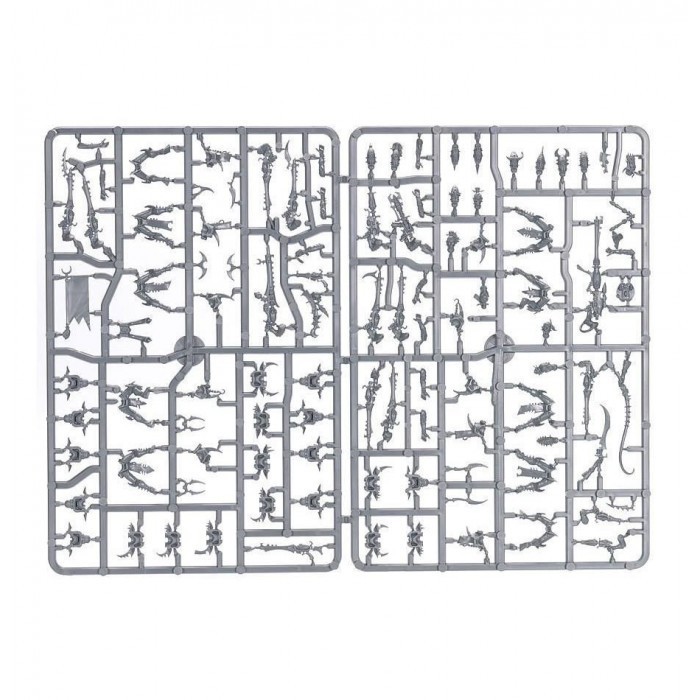 Cette boîte contient 10 Drukhari Warriors plastique. Ce kit de 102 pièces propose cinq modèles de jambes, 15 têtes différentes (5 nues et 10 casquées), 10 corps (avec trois corps masculins et trois corps féminins différents) et différentes options. Il inclut aussi toutes les options d'armes décrites dans le Codex Dark Eldar : un Lacérateur, un Disloqueur, un Canon éclateur, une Lance de ténèbres, un Pistolet disloqueur et un Neurocide. Figurines fournies avec des socles ronds de 25mm.