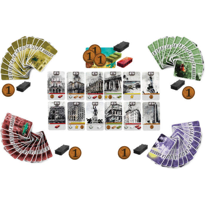 Bienvenue à la Havane ! Vous y êtes pour aider à construire la capitale de Cuba, afin de donner à la ville toute sa splendeur. Récoltez diverses ressources grâce à vos cartes action : matériaux de construction, gravats, pesos et ouvriers, pour ériger les plus beaux bâtiments et obtenir du prestige. Mais gare aux voleurs qui se mettront en travers de votre route !