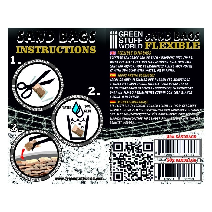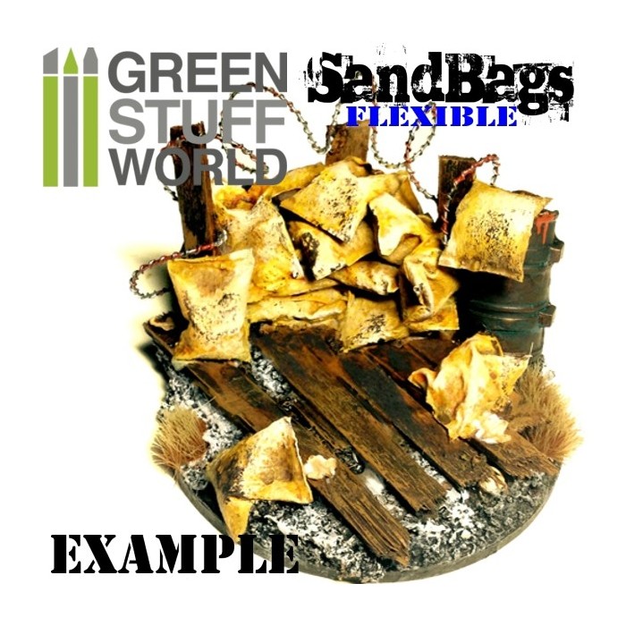 Sacs de Sable Flexible x25 Sacs de sable qui peuvent être adaptés à toute surface. Idéal pour représenter les champs de batailles, tranchées, zones de combats, etc. sur les socles, dioramas et décors à l'échelle 1:35 (1:32-1:43). Pour une solution permanente, tout couvrir avec un mélange de colle blanche et d'eau, ou du vernis. Taille approximative de chaque sac de sable: 18x10mm Ce jeu contient 25 sacs