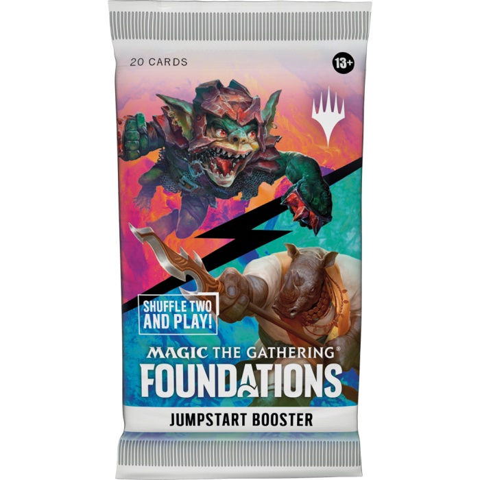 Donnez vie à Magic avec des combinaisons incroyables. Prenez deux Jumpstart boosters, mélangez-les, et voilà ! Vous pouvez jouer ! Ce booster Jumpstart contient 20 cartes Magic, y compris tous les terrains nécessaires pour jouer. Chaque booster contient 1 carte avec une illustration inspirée par les animes et inclut au moins 1 carte rare ou rare mythique Si vous cherchez à optimiser vos combinaisons, les boosters Jumpstart Fondations peuvent être combinés avec des boosters de tous les autres produits Jumpstart.