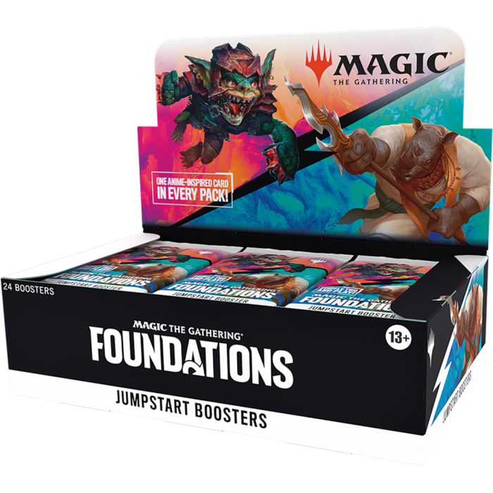 Donnez vie à Magic avec des combinaisons incroyables. Prenez deux Jumpstart boosters, mélangez-les, et voilà ! Vous pouvez jouer ! Dans cette boîte de boosters Jumpstart Fondations, vous trouverez 24 boosters Jumpstart, contenant chacun 20 cartes Magic, y compris tous les terrains nécessaires pour jouer. Chaque booster contient 1 carte avec une illustration inspirée par les animes et inclut au moins 1 carte rare ou rare mythique Si vous cherchez à optimiser vos combinaisons, les boosters Jumpstart Fondations peuvent être combinés avec des boosters de tous les autres produits Jumpstart.