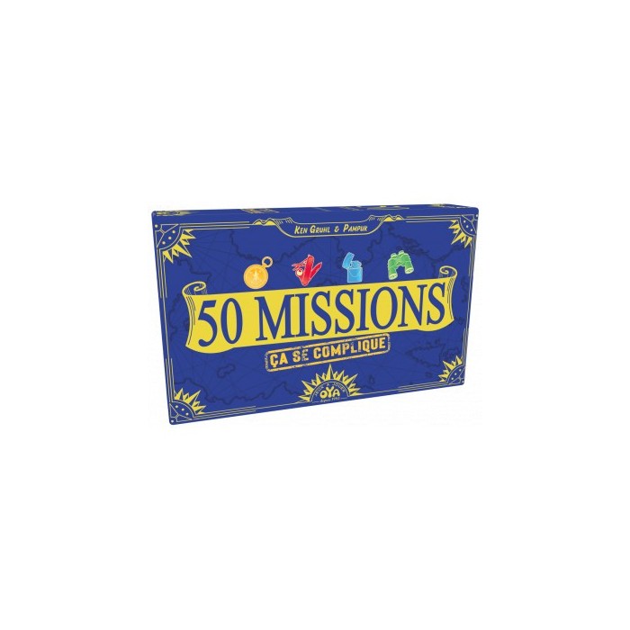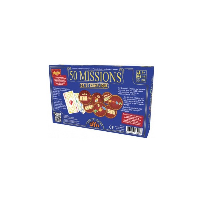 50 Missions « ça se complique » c’est d’abord 50 nouvelles Missions, plus originales et retorses que jamais. Mais c’est aussi le «1» doré qui vous permet de désigner le prochain joueur, des Missions à Embûche pour vous gêner et des Missions à Gadget pour vous aider. Oui, ça se complique, c’est sûr, mais pour votre plus grand plaisir.