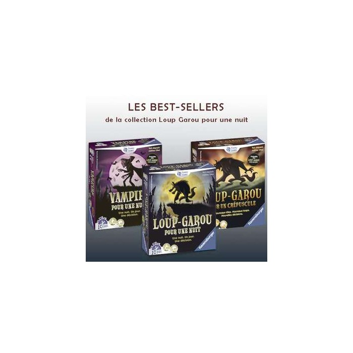 Les 30 meilleurs rôles de Loup Garou pour Une Nuit, Loup Garou pour un Crépuscule et Vampire pour Une Nuit ! Dès 9 ans.
