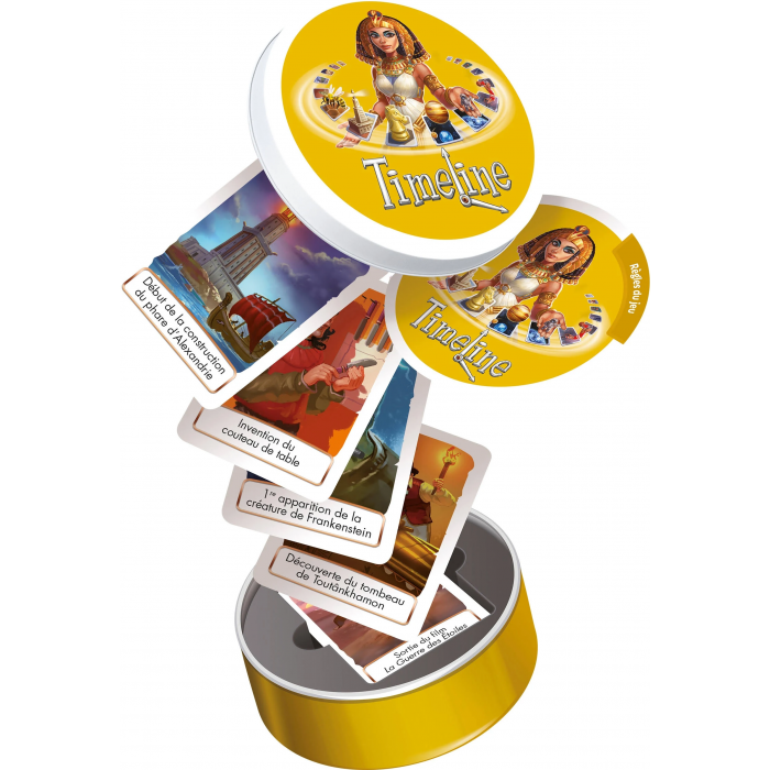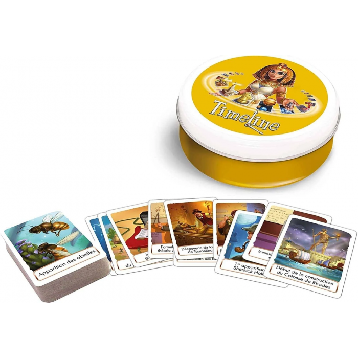 Timeline est un jeu de cartes rapide et amusant avec des règles d’une grande simplicité. En famille ou entre amis, amusez-vous à replacer correctement les cartes dans la ligne du temps. Mobilisez vos connaissances et votre intuition ! Quel que soit le niveau des joueurs et pour toutes les générations, rebondissements et étonnements vous permettront de passer un bon moment en jouant avec le temps.
