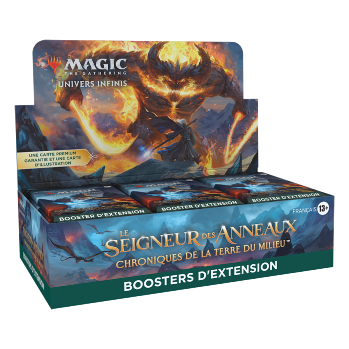 Chaque booster inclut une combinaison de 1 à 4 cartes de rareté rare ou supérieure, 3 à 7 cartes inhabituelles, 3 à 7 cartes courantes et 1 carte de terrain. Un terrain Premium traditionnel remplace le terrain de base dans 20 % des boosters d'extension et une carte d'illustration Signature estampillée Premium remplace la carte d'illustration dans 10 % des boosters d'extension. Une carte rare mythique sans bordure Premium traditionnelle peut être trouvée dans <1 % des boosters.