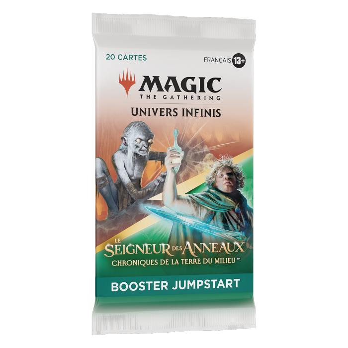 Chaque booster Jumpstart Le Seigneur des Anneaux : chroniques de la Terre du Milieu a un thème. Prenez deux boosters et mélangez-les ensemble pour des combos fous et une expérience de jeu unique, parfaite pour une partie rapide. Idéal autant pour les anciens joueurs qui veulent se remettre à Magic que pour apprendre à jouer d'une façon amusante.