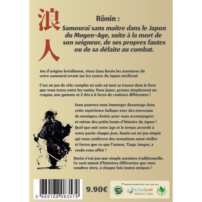 Destiné à un public fan de livres de jeux solo et/ou de manga, Ronin peut être rejoué des dizaines de fois, en vivant des histoires toujours différentes. C’est donc un vrai JDR et pas juste une aventure en ‘one shot’ !