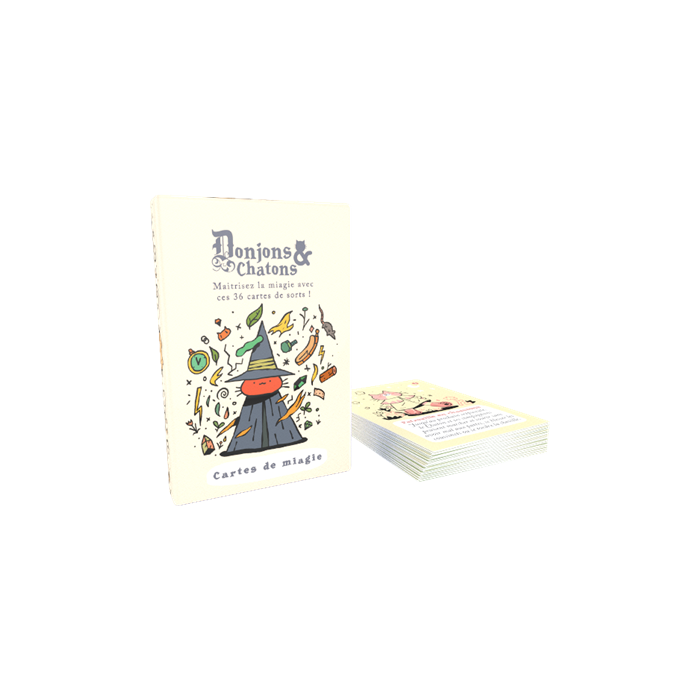 Ce paquet de cartes comprend 36 sorts pour le jeu de rôle Donjons & Chatons