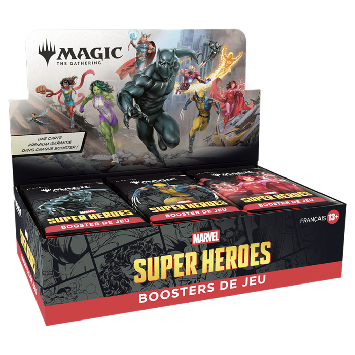 L'univers Marvel débarque en force ! Une équipe all-star de gros cogneurs passe des pages de BD au champ de bataille, et le destin du monde est en jeu. Rassemblez l'équipe de super-héros et de super-vilains de vos rêves, puis équipez-les de leur équipement emblématique, avant d'utiliser leurs redoutables capacités. Envolez-vous, frappez et fracassez pour remporter la victoire dans Magic: The Gathering | Marvel Super Heroes !