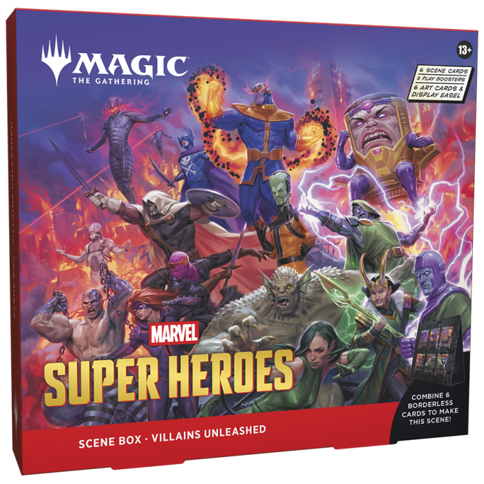 Immortalisez des affrontements épiques avec une boîte scénique Magic: The Gathering | Marvel Super Heroes. Donnez des super-pouvoirs à votre deck ou votre collection avec six cartes scéniques sans bordure Premium traditionnelles. Même si chaque carte scénique est une carte Magic jouable (avec texte de règles, cette boîte contient également six cartes d’illustration, qui vous permettent d’admirer la scène dans toute sa gloire et de la présenter sur le chevalet inclus ! Chaque boîte scénique est accompagnée de trois boosters de jeu, qui sont le meilleur moyen de découvrir ce que Magic peut vous offrir : ils sont parfaits pour construire des decks, jouer avec des amis, et sont super amusants à ouvrir.