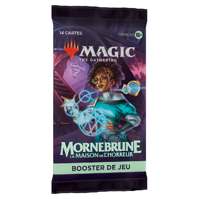 Lorsque l'on est prisonnier des salles labyrinthiques de Mornebrune, la seule façon d'en sortir, c'est de tout traverser. Faites équipe avec des survivants courageux et frayez-vous un chemin jusqu'au cœur de la Maison. Cette boîte de boosters contient 36 boosters de jeu Mornebrune : la Maison de l'horreur, qui sont à la fois parfaits pour le format Limité et amusants à ouvrir.