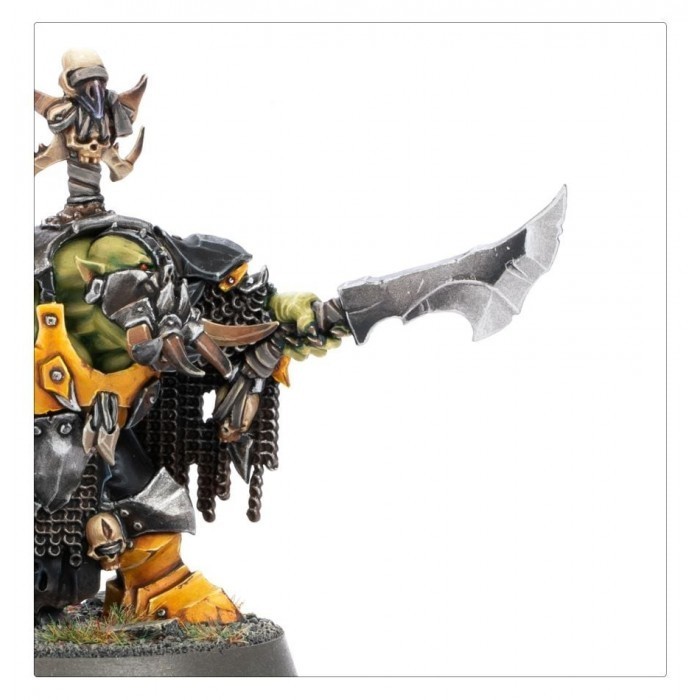 Les Big Boss Durboys sont des Mâchefers Vétérans qui savent analyser un champ de bataille et dont la présence beuglarde suffit à intimider leurs gars pour qu'ils tiennent leur ligne. Seuls les Durboys les plus robustes survivent assez longtemps pour devenir des Big Boss. Ces terrifiants guerriers peuvent changer une horde d'orruks turbulents en une machine à tuer disciplinée qui avance dans un semblant de formation avant de percuter l'ennemi comme un poing blindé. Ce kit plastique permet d'assembler un Big Boss Durboy, un commandant brutal des clans Mâchefers. Cet énorme orruk est armé d'un charkuteur et d'un kikoup' dentelé pour tabasser et découper tout ennemi assez fou pour mettre sa puissance au défi. Son armure lourde et sa terrifiante muselière s'accordent parfaitement aux Durboys qu'il dirige au combat, et l'icône montée sur son dos l'aide à mieux se distinguer au sein de la horde. Ce kit est composé de huit éléments en plastique et est fourni avec un socle rond Citadel de 40mm. Cette figurine est fournie non peinte et nécessite assemblage – nous recommandons d'employer la Colle Plastique Citadel et la peinture Citadel.