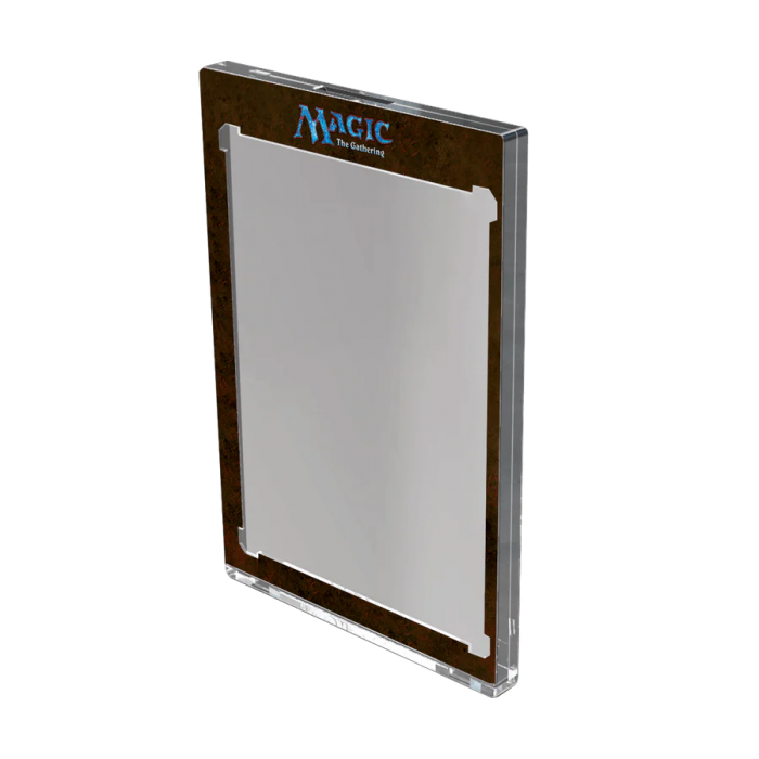 Conçus pour accueillir vos cartes à collectionner, les étuis ONE-TOUCH en deux parties bénéficient d'une conception unique avec charnières coulissantes et fermeture magnétique, vous évitant ainsi l'utilisation d'un tournevis. Ce ONE-TOUCH Edge reprend le design classique du dos de carte Magic : The Gathering, idéal pour mettre en valeur vos cartes classiques préférées. Il utilise des additifs anti-UV pour protéger votre carte des rayons UV nocifs et est fabriqué à partir de matériaux sans PVC pour une protection sans acide, garantissant ainsi la conservation de votre précieux coup sous l'écran. Ce modèle peut accueillir des cartes Magic : The Gathering de taille standard (6,35 cm x 9,5 cm) jusqu'à 35 pt d'épaisseur. (Carte non incluse)