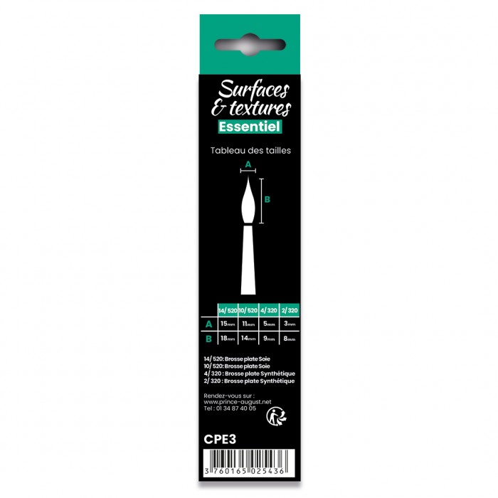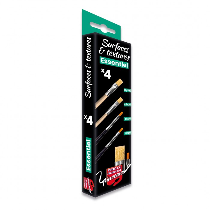 Le Set Surfaces & Textures CPE3, une sélection de 4 pinceaux plats pour travailler efficacement les surfaces larges et texturer vos réalisations.