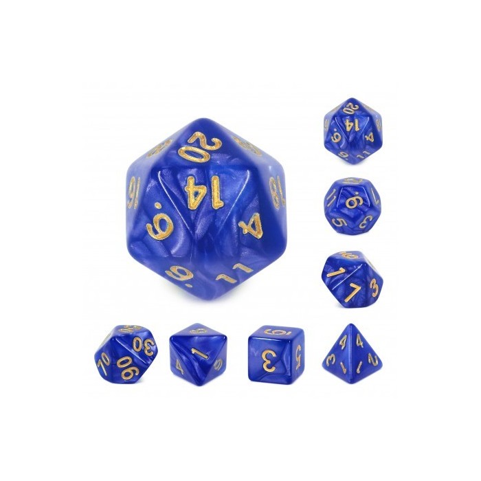 Set de 7 dés - Blue (Golden font) pearl